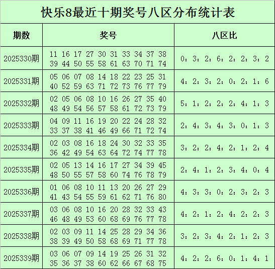 福彩抖擞8第2025339期开奖追忆:03 06 07 09 14 19 25 26 31 32 35 36 37 38 60 62 66 67 68 75,其中奖号八区比为4:2:2:6:0:1:4:1。