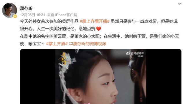 最近,“老戏骨”濮存昕发博为我方的外孙女宣传短剧,称诚然仅仅参与了少许戏份,然而小外孙女初次干预荧屏作品,为她点赞和感到昌盛。