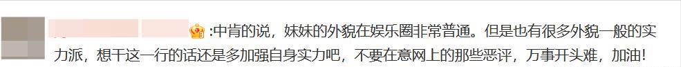 也有网友客不雅地示意,文娱圈也并不是都看外貌,有好多便是不看外貌的实力派,是以念念干这一滑就多加强本人实力,不要太顾惜网上的恶评,万事伊始难。